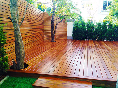 Six large columns were installed across a 12 metre section of the wall, with yellow balau wood timber used to create a slated privacy screen, making the garden completely private from street view.