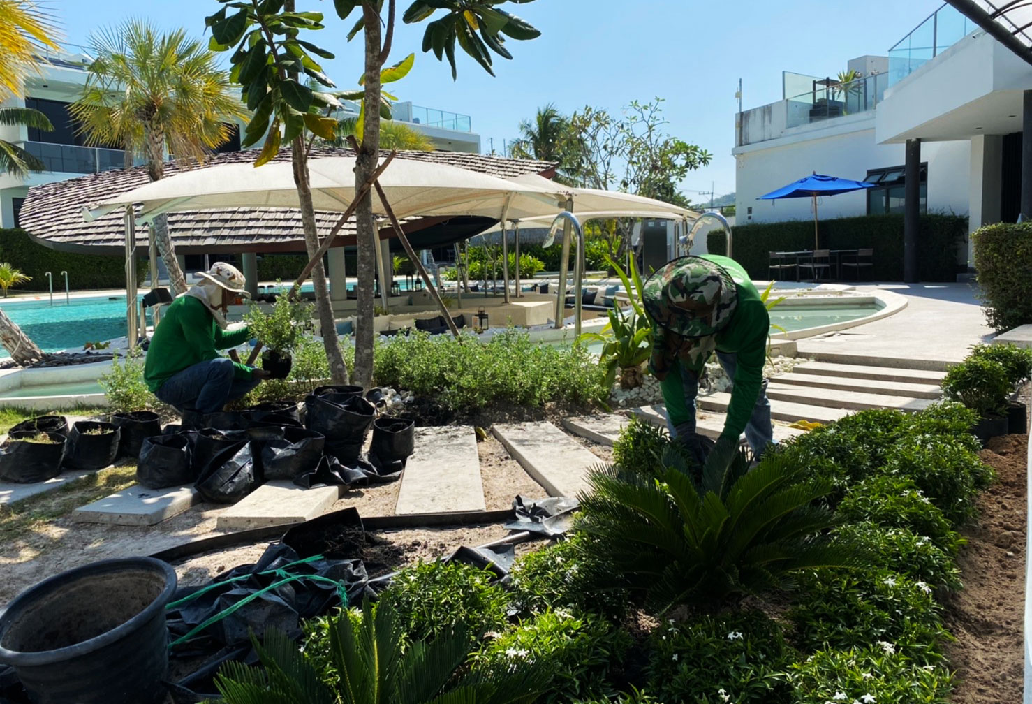 Previous image Next image landscape installation asia Pavers are set and the planting is underway tropical garden plans