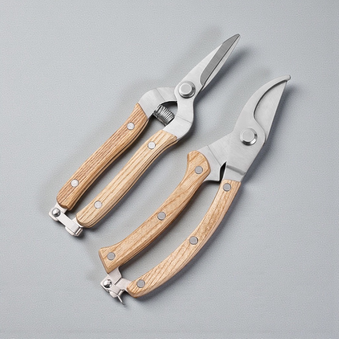 SPRING Pruning Shears – Stainless Steel with Wooden Handle