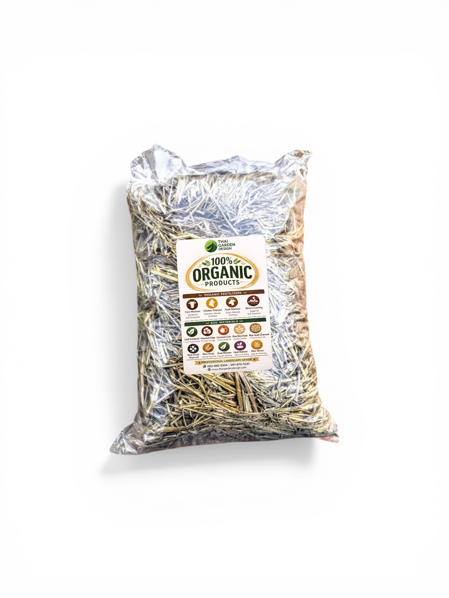 Rice straw is a natural by-product from rice harvesting, widely used in gardening as mulch and soil conditioner. It helps retain soil moisture, reduce weed growth, and improve soil structure over time as it decomposes.