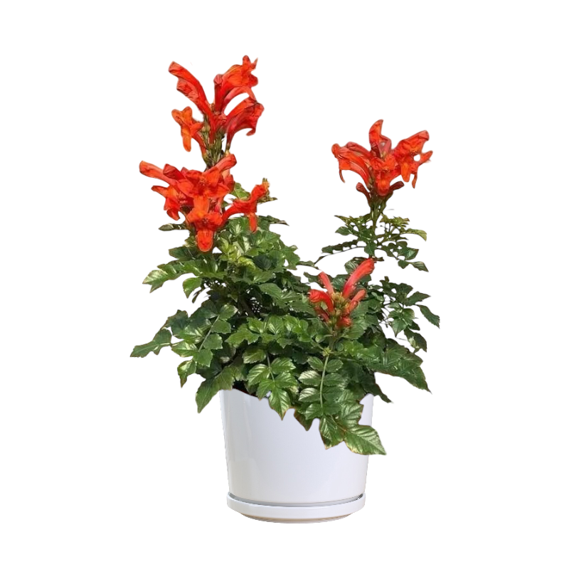 Tecomaria capensis is a fast-growing flowering shrub or climber known for its bright orange trumpet-shaped bloomsand dense green foliage.