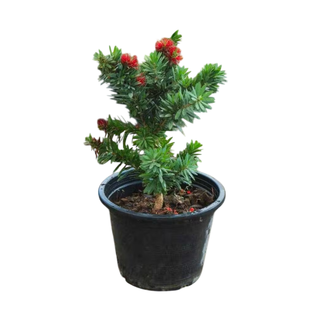The mature weeping bottlebrush is commonly used as a source of shade because it is able to spread wide and cover larger areas. Those sold here are a young version.