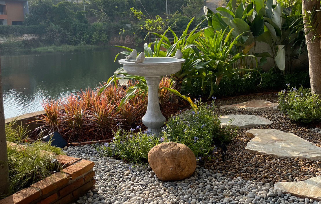 bird bath lake side garden
