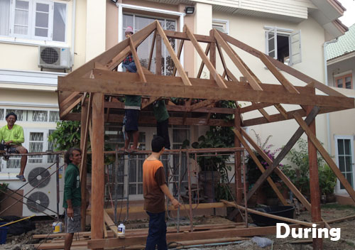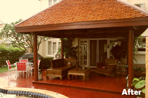 This homeowner in Bangkok required a new Thai sala with the traditional fish scale roof tiles, to use as an extension of their home and to connect seamlessly with their pool, situated approximately 6.0m from the main house / garden doors.